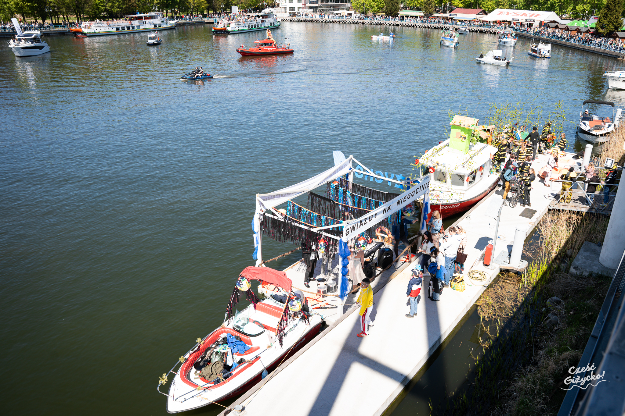 Zgodnie z tradycją poprzednich lat, odbyła się parada jednostek pływających, gdzie w ramach konkursu mogły sprezentować się wspaniale przebrane ekipy. Widać było zaangażowanie, ale i jak zawsze – dobrą zabawę. Pogoda dopisała, więc i publiczność tłumnie przybyła by podziwiać dzisiejsze wydarzenia. Po paradzie łodzi i statków mogliśmy obejrzeć pokaz flyboard.